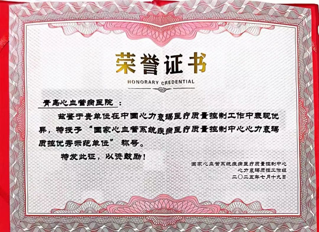 喜报!我院荣获国家心血管系统疾病医疗质量控制中心“心力衰竭质控优秀示范单位”