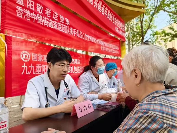 重阳将至,“敬老月”氛围正浓,伴随气温渐寒,老年群体对健康管理的需求持续攀升。为切实守护辖区老年人的身心健康,10月16日上午,我院联合香港中路街道社区卫生服务中心在江西路89号街心花园开展“敬老月”弘扬孝亲敬老美德 共建老年友好社会送健康活动。活动以“多学科专家组团+家门口服务”的模式,将优质、专业的健康守护精准送到居民身边,用实际行动践行“敬老、爱老、助老”的医者初心。